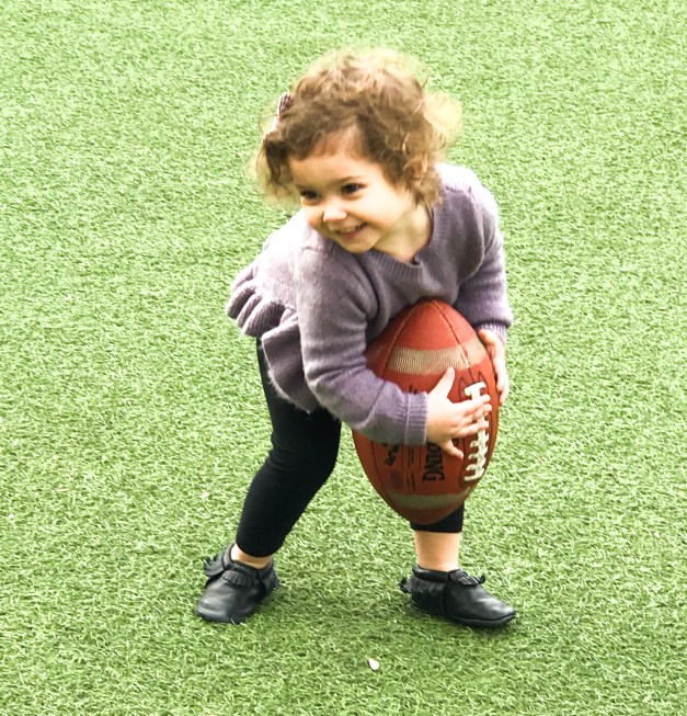 The first place we headed was the large grassy field with artificial turf that is perfect for tossing a soccer or football, ( which are provided with a few other games.) Since, we were traveling with a two year old, it was a great place to allow her to run a little energy off! It’s also the perfect spot to drop off Dad or Granddad with the kids while Mom shops at the market.