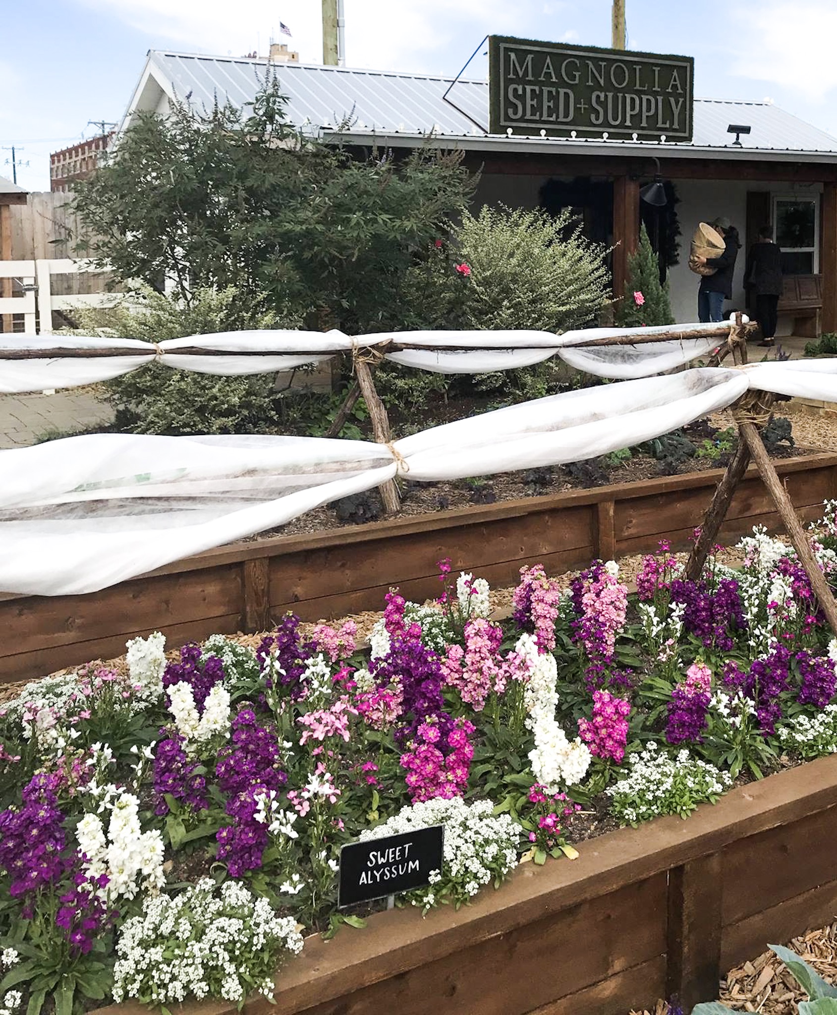 I have to admit, my favorite part of the Silo’s was the Magnolia Feed and Supply filled with live plants, seed packets, garden style decor and even a section for your own personal fairy garden! The garden area is truly an inspiration even to the most novice of gardeners. The raised bed are filled with Snapdragons and Sweet Alyssum. The gardens were so sweet and charming that I was eager to get home and add some more flowers to our own garden!